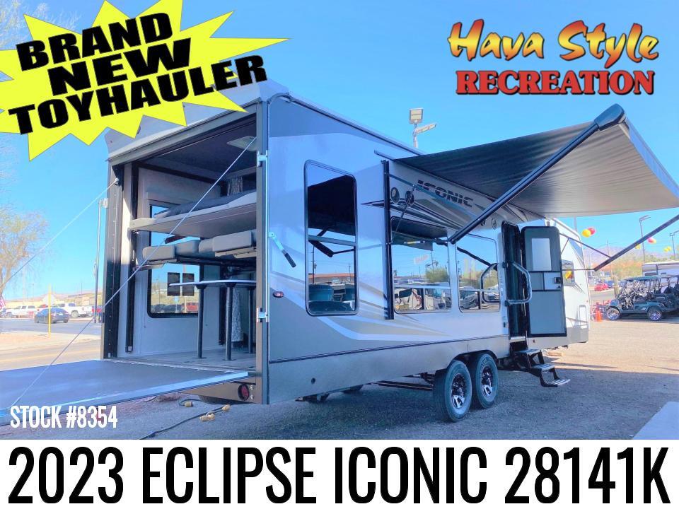 Used 2020 Eclipse Iconic Wide Body 3518IKG Toy Hauler Fifth Wheel Stock T1248 Downey CA 1 of 1 1 Make an offer. Eclipse RV has created ICONIC with our new line up of luxury toy haulers. These RVs allow you to enjoy a stylish interior and hi-def exterior.